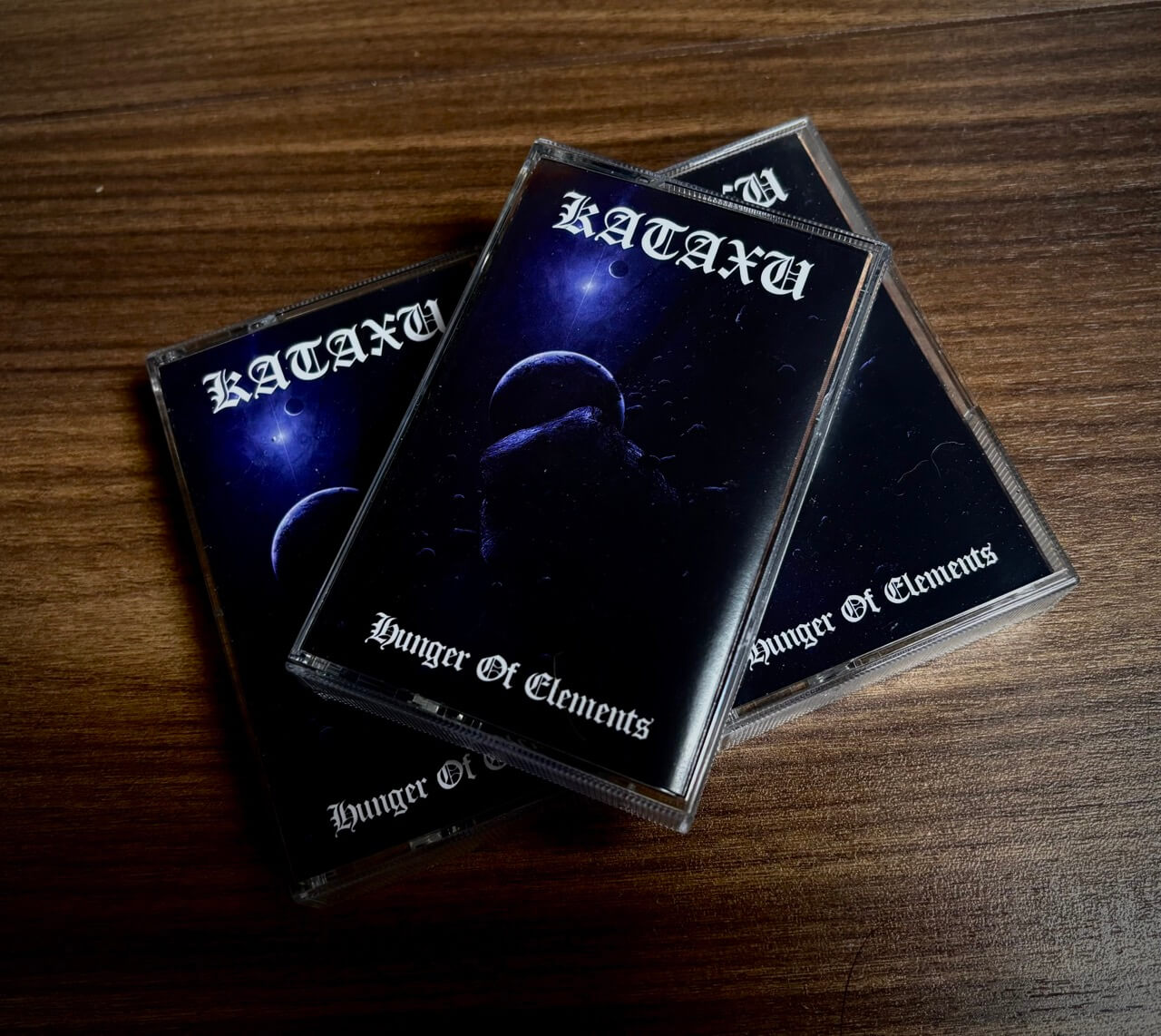 KATAXU - Hunger of Elements – a cosmic masterpiece from Poland's legendary symphonic black metal scene, now available in a limited cassette edition. Kataxu unleashes an epic journey through elemental forces and astral dimensions, where majestic keyboard arrangements intertwine with raw, hypnotic black metal aggression. The band's signature sound balances atmospheric grandeur with underground authenticity, creating sprawling compositions that evoke ancient nature worship, cosmic mysticism, and the raw power of primal elements. This cassette format preserves the authentic underground aesthetic that defined the Polish black metal golden era, making it essential for tape collectors and fans who worship the atmospheric, keyboard-driven sound that Kataxu pioneered. A crucial release for devotees of symphonic black metal who appreciate the balance between cinematic ambition and raw, uncompromising black metal fury in the tradition of early Summoning and the classic Polish cosmic sound.