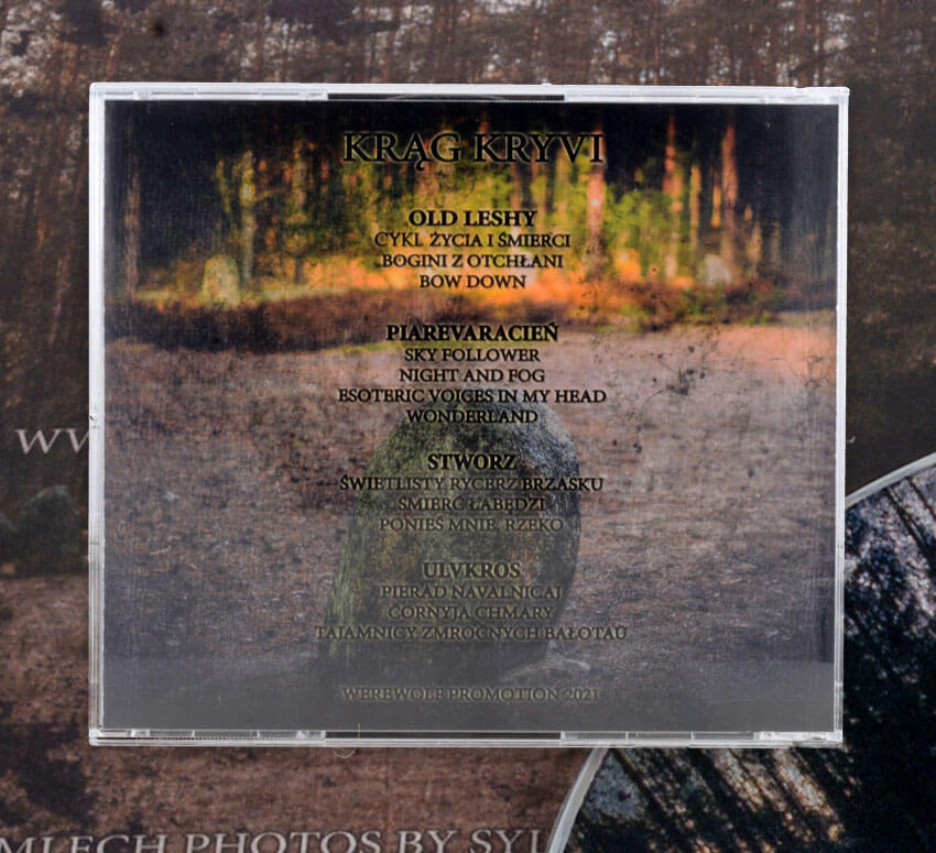 STWORZ / PIAREVARACIEŃ / ULVKROS / OLD LESHY - Krąg Kryvi – a four-way split forged in raw, pagan black metal, bound together by Slavic brotherhood and a ritual, forest-drenched aura. The release features tracks by Old Leshy, Piarevaracień, Stworz, and Ulvkros, moving from warlike frost to misty, swamp-born mysticism rooted in Slavonic darkness. A must for fans of uncompromising heathen/Slavonic black metal and collectors of Polish–Belarusian underground split releases.