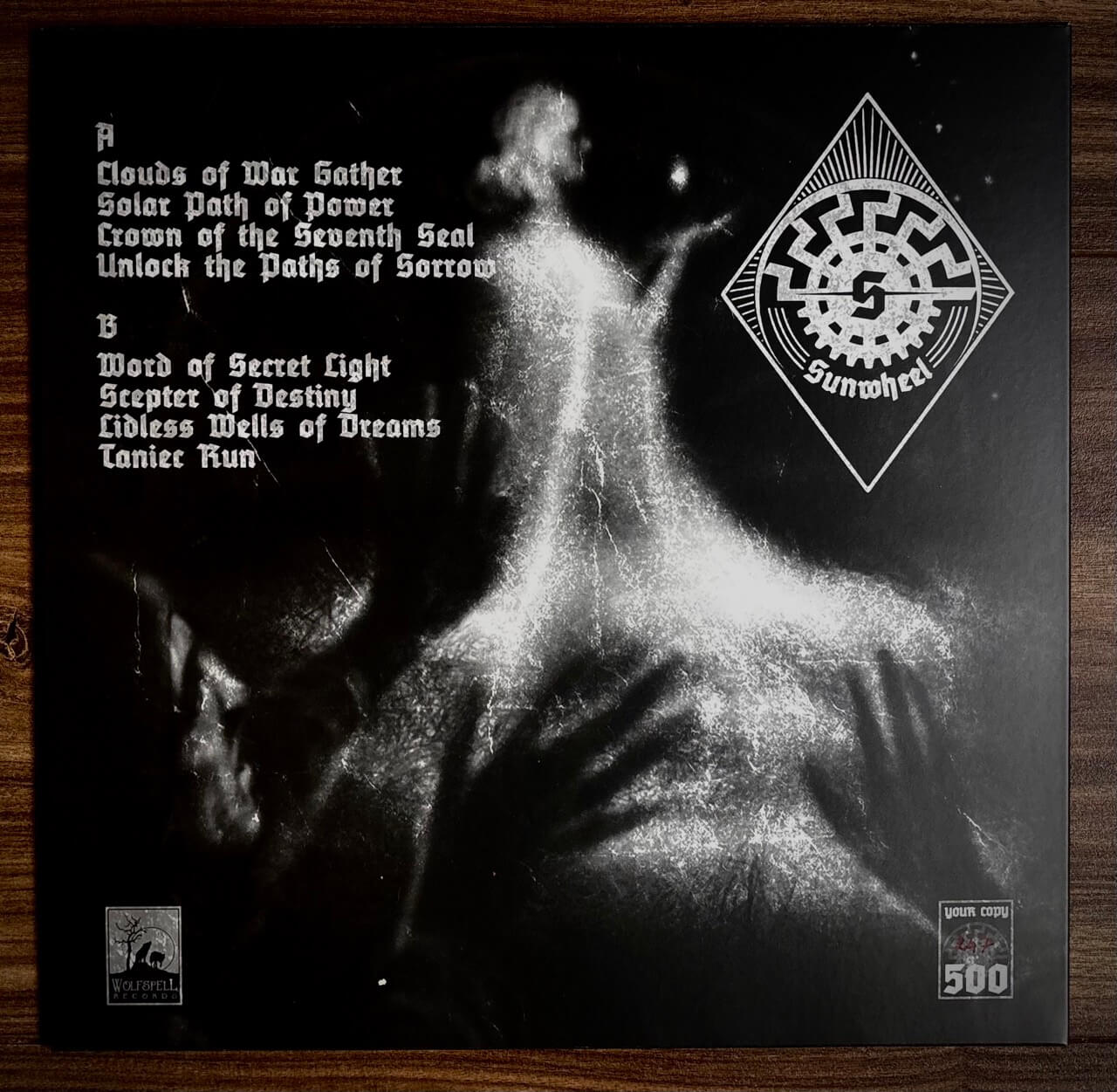 SUNWHEEL - Iron Age of Strife – a majestic declaration of war from the Polish underground, where symphonic grandeur meets raw black metal fury. Sunwheel forges an epic soundscape of keyboard-driven atmospheres and aggressive riffs that evoke ancient battles, solar mysticism, and the unrelenting march of iron-clad warriors. From the ominous intro "Clouds of War Gather" through tracks like "Solar Path of Power" and "Crown of the Seventh," the album delivers a hypnotic journey through cosmic warfare and pagan symbolism. This limited black vinyl pressing on Wolfspell Records captures the essence of atmospheric Polish black metal, bridging the legacy of bands like Kataxu with a fresh, militant energy. Essential for fans of symphonic black metal who worship the marriage of keyboard majesty and uncompromising aggression.